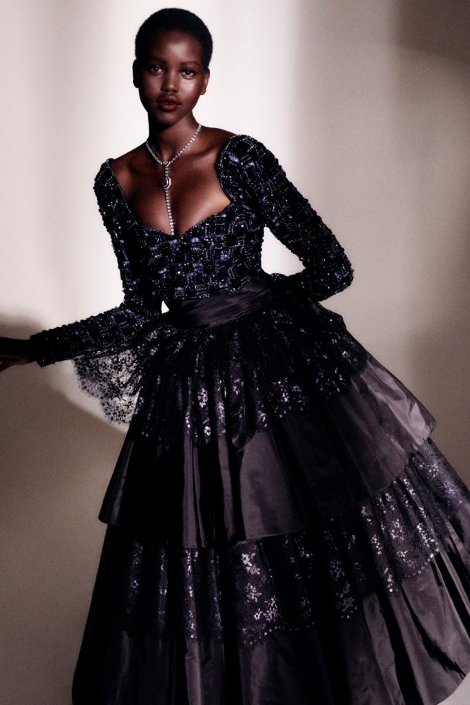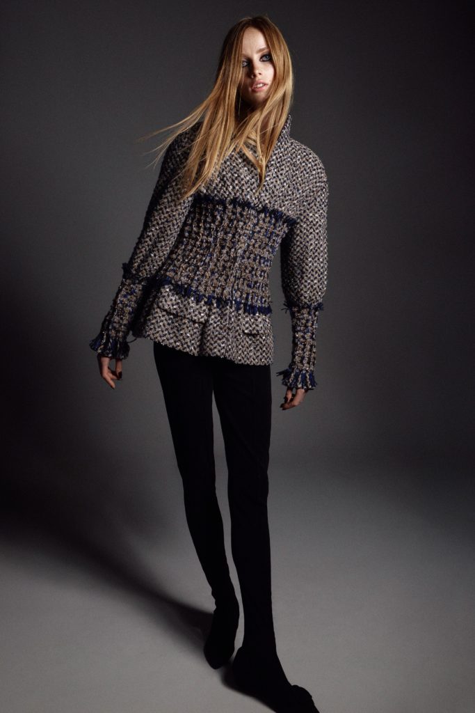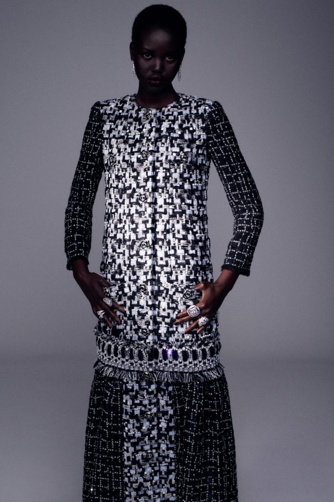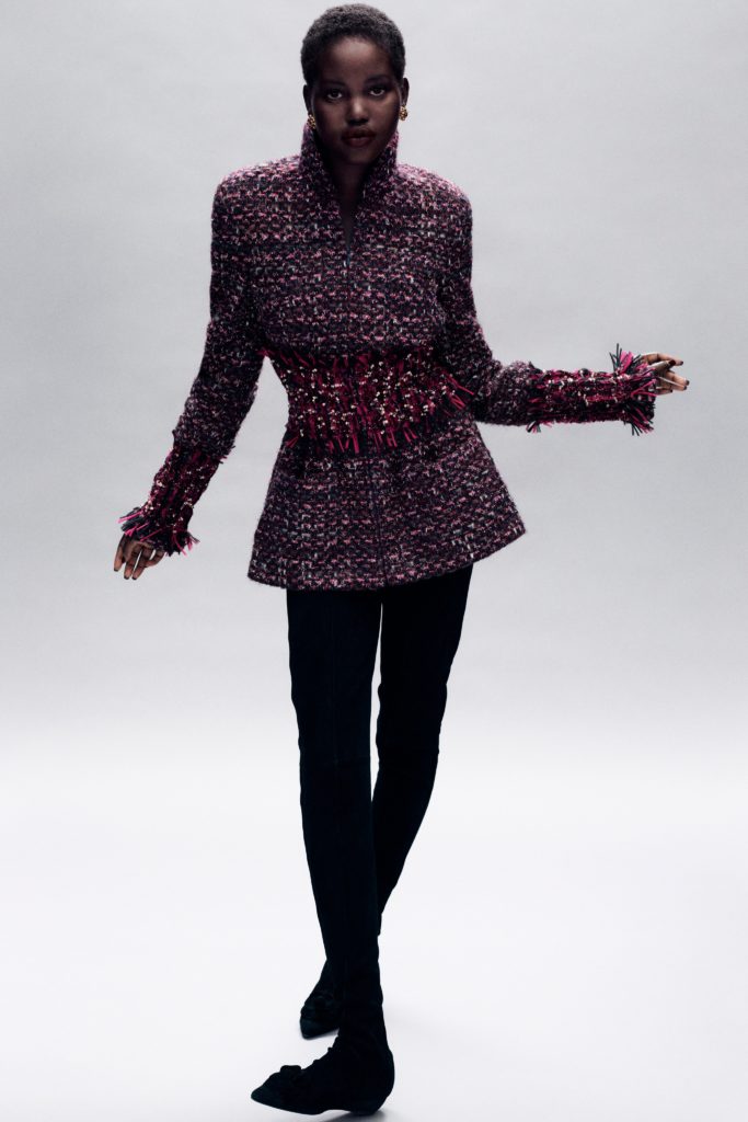 Tonally, it’s quite different from her Spring 2020 haute couture showing for the house. Which cited Coco Chanel’s time at Abbey of Aubazine as a source. Viard said that was intentional: “I like working like this, going in the opposite direction of what I did last time. I wanted complexity, sophistication.”