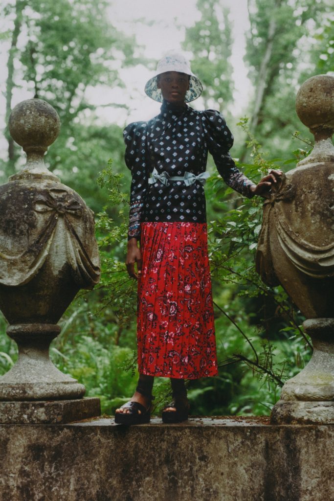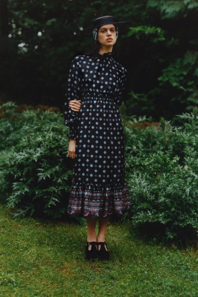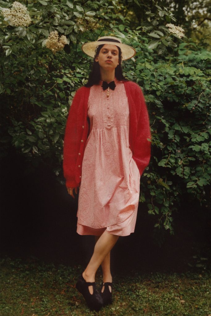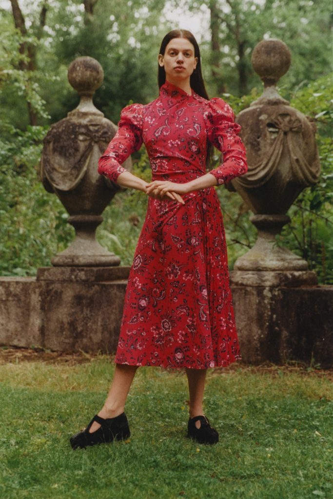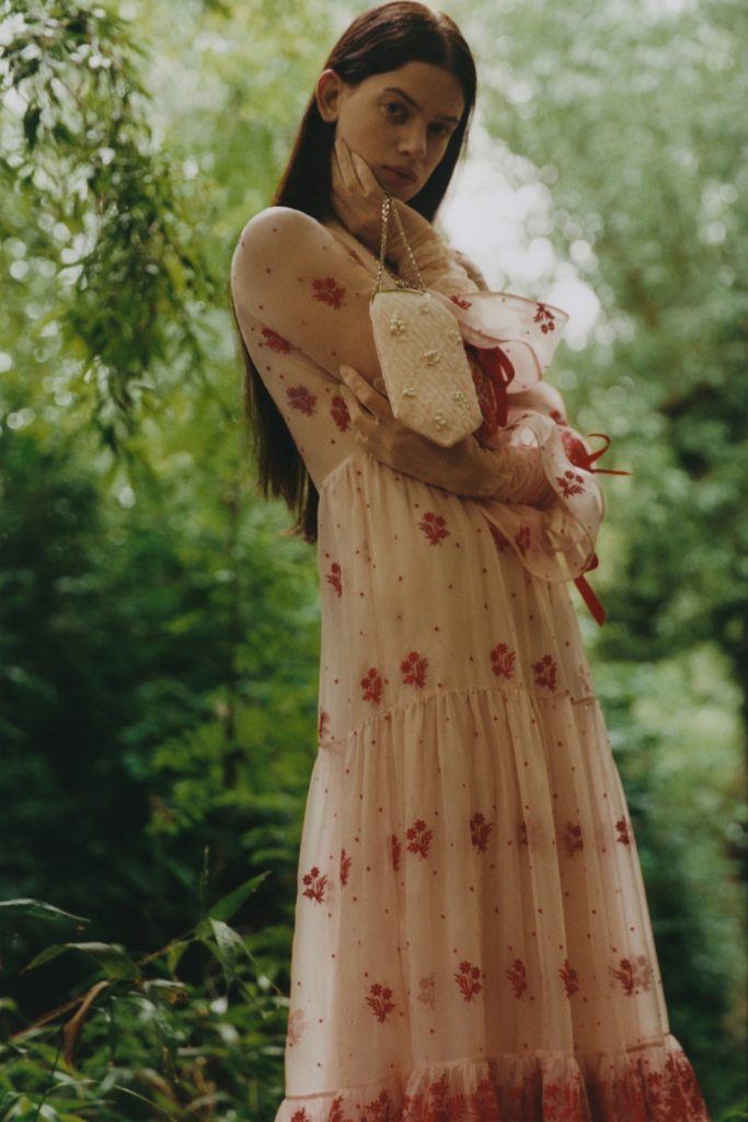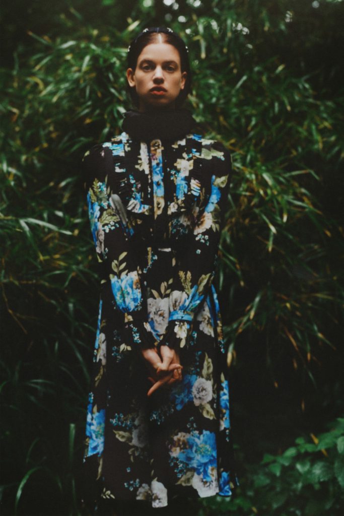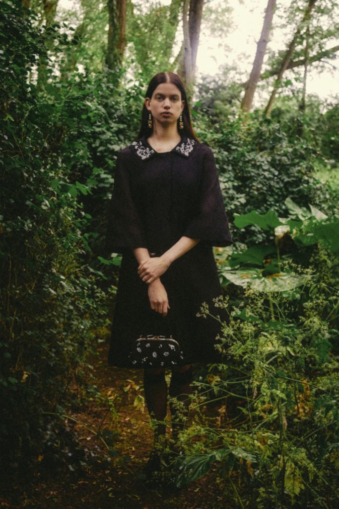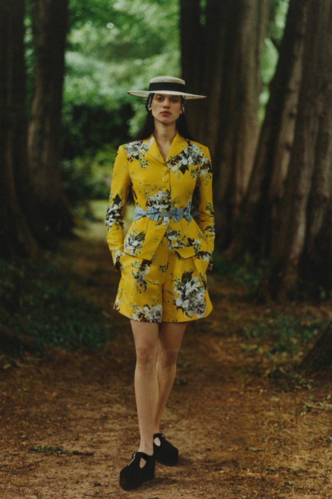 Emerging from lockdown into the lushness of the English countryside. That far-off dream has become a reality, at least through the forest portal that Erdem Moralioglu Resort 2021 collection has created for his pre-spring collection. “We went to a place on the outskirts of Epping Forest, which is on the edge of London,” he relates. “It’s a body of work made entirely during lockdown. I can’t say how satisfying it’s been to see it all come together. The feeling of being back doing what we do.”