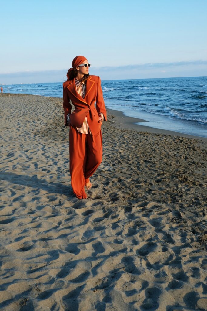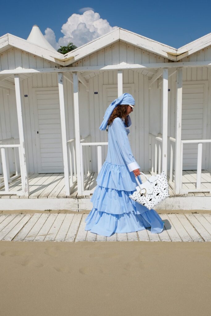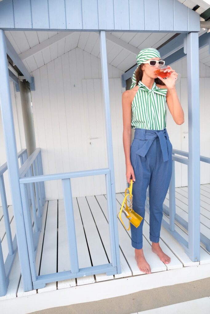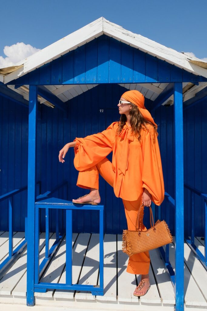 Quarantine pushed some designers into DIY mode—think Valentino’s Pierpaolo Piccioli and Louis Vuitton’s Nicolas Ghesquière, who both took to the camera and lensed their advertising campaigns or lookbooks themselves. Sara Battaglia joined the illustrious bandwagon of amateur photographers, embracing the challenge of shooting her own resort collection. Entrusting a model friend, with no help from a makeup artist and no hairdresser in tow (and no post-prod retouching, as she proudly pointed out), she decamped to Forte dei Marmi, a swanky Italian resort famous for its rainbow-colored beachside cabanas. “After the restrictions of the confinement, I wanted to give free rein to my joie de vivre,” she said on the phone. Who can blame her?